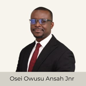 Osei Owusu Ansah Junior is an Associate Director in the Management Consulting Unit at KPMG Ghana, with over a decade of experience delivering impactful advisory services across West Africa. He is a Chartered Accountant (ICAG), Project Management Professional, and Lean Six Sigma Green Belt holder. He also holds a Master’s degree in Finance from the Ghana Institute of Management and Public Administration (GIMPA), a Bachelor’s degree in Mathematics from the Kwame Nkrumah University of Science and Technology, and a postgraduate certificate in public policy analysis from the London School of Economics.
